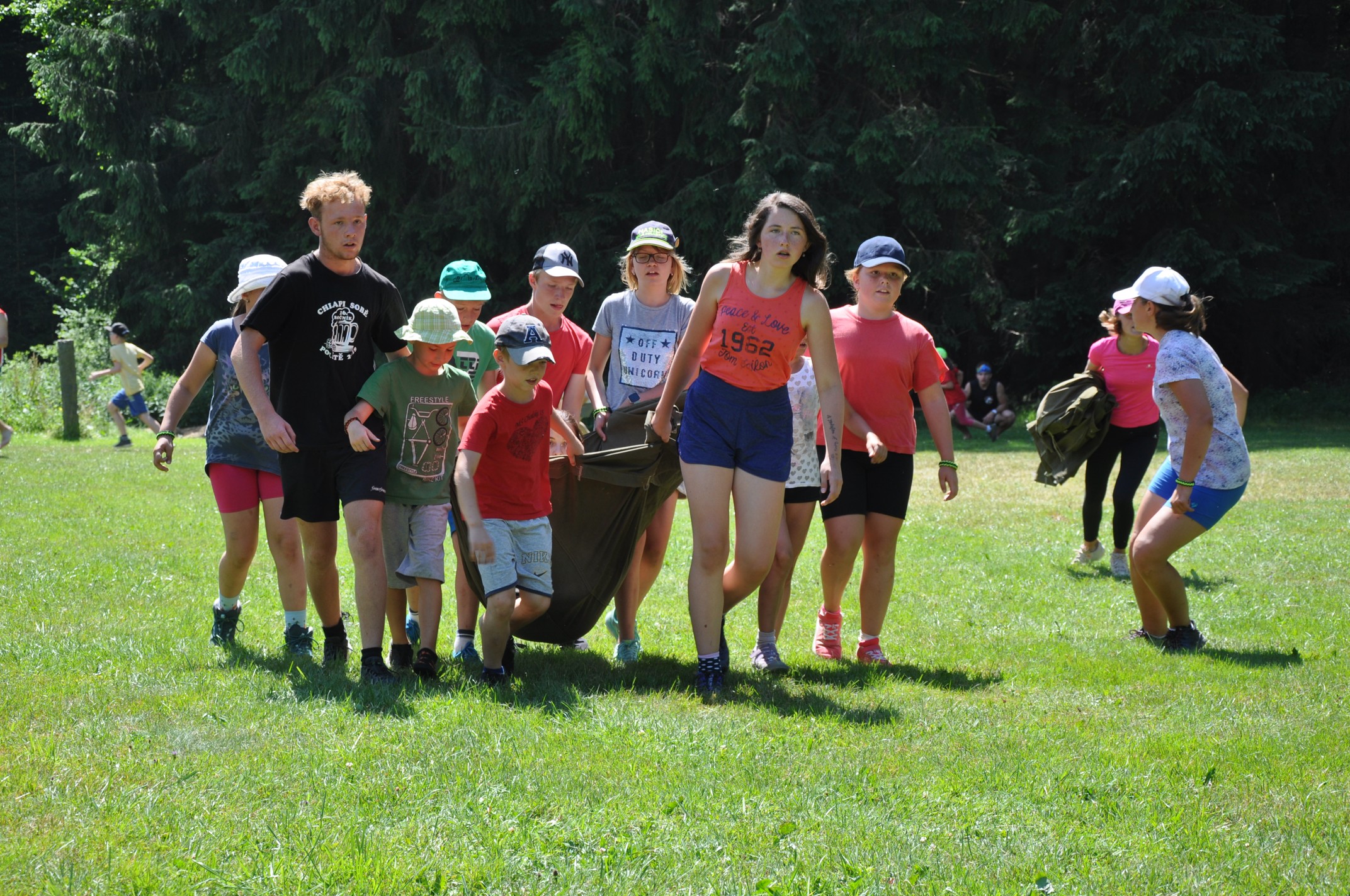 Hned první den jsme se poznali s prvním zeměplošským turistou Dvoukvítkem a jeho Zavazadlem – truhlou na nožičkách, která jej na jeho cestách věrně následovala. Průvodcem se mu, trochu nedobrovolně, stal nedostudovaný mág Mrakoplaš. Spolu s nimi jsme vyrazili vstříc dobrodružství. Potkali jsme vysloužilého hrdinu Barbara Cohena, plavali kolem Krajopádu, utkali se s divokými trolly. Program zpestřila řemesla, při kterých jsme si vyrobili spoustu zajímavých věcí – třeba dřevěné hodiny, záložky z pryskyřice, náramky z paracordové šňůry nebo krasohledy. Nechyběly ani sporty – ty tradiční, jako střelba nebo pádlování, ale i méně obvyklé, třeba klepácký biatlon nebo discgolf.