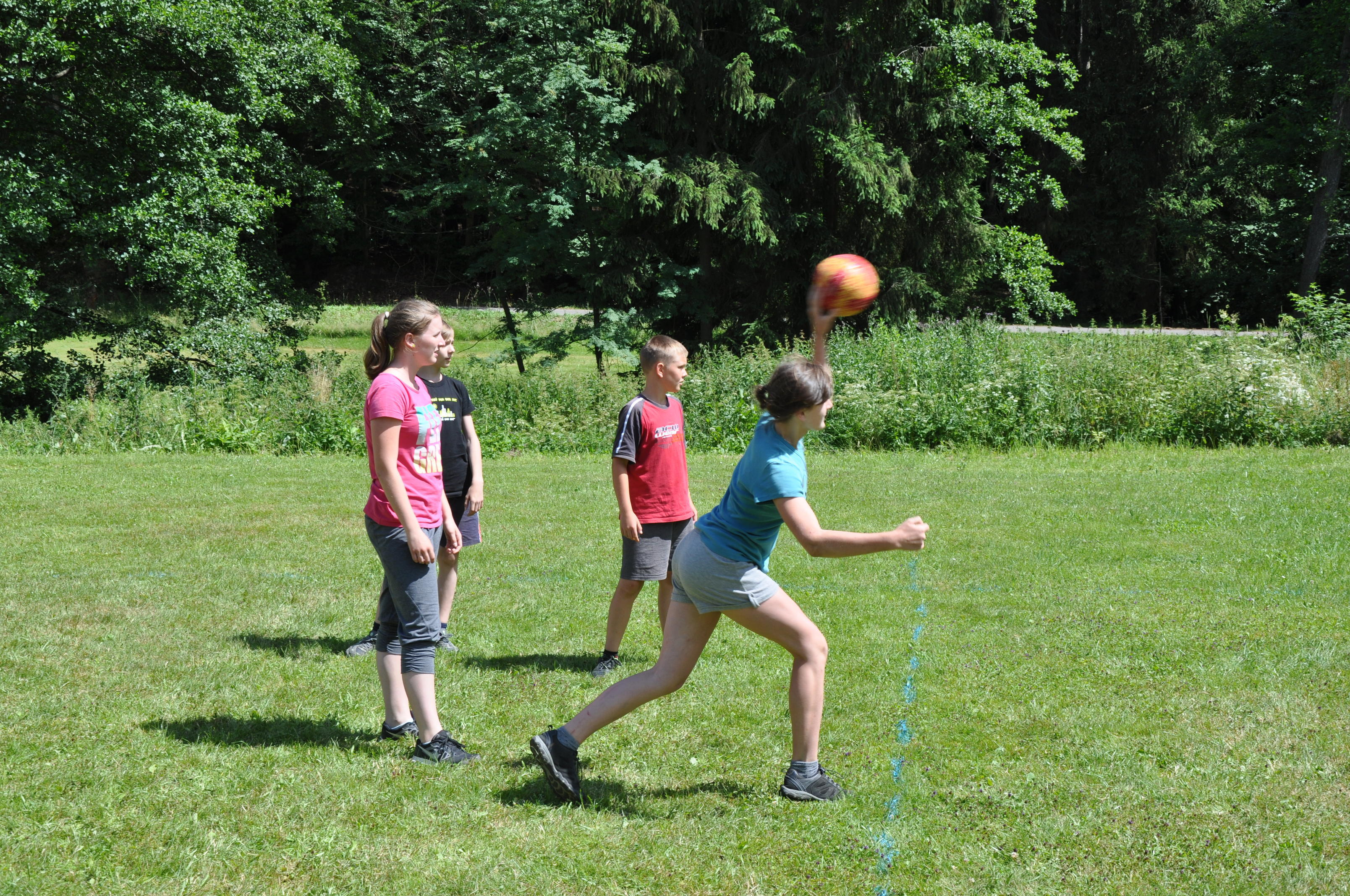 Když se naši hrdinové rozloučili s čarodějkami, zavítali do Ankh-Morporku, největšího města Zeměplochy. Zde se seznámili s velitelem Elániem a jeho Městskou hlídkou, která se zrovna potýkala s nebezpečným drakem útočícím na město. Pomáhali jsme pochytat rozprchlé bahenní dráčky, zachránili lady Sibylu Berankinovou před sežráním a nakonec jsme velkého draka úspěšně zahnali. Mezi táborovými hrami nesměly chybět oblíbené sportovní turnaje. Letos jsme soupeřili v ringu, vybíjené, brännballu, famfrpálu a frisbee.